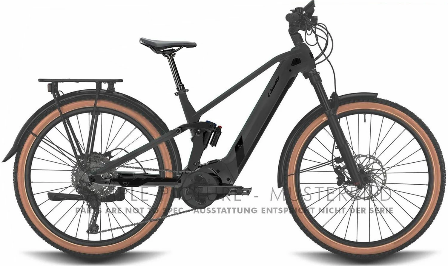 The Conway Xyron SUV 4.9 is probably the most comfortable and yet most suitable E-MTB for everyday use. Equipped with lights, a rear rack and mudguards, it combines the comfort of an e-fully with the practicality of an urban bike. It impresses with a powerful Bosch Performance CX Gen 4 motor. The 750 Wh battery reliably supplies you with the necessary power so that you can enjoy your time on your bike for even longer.